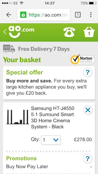 You may also miss the fact that the free delivery isn’t added automatically, you have to remember a code to type in during checkout.