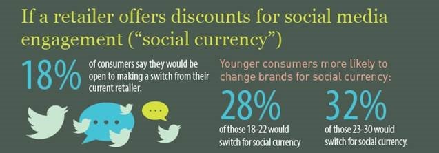 According to the study, 28% of consumers aged 18-22 and 32% of those aged 23-30 would shift their retailer loyalties if offered social discounts.