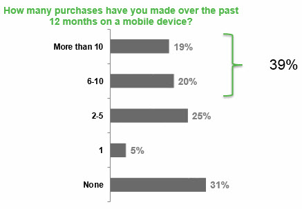 Mobile buying is poised for a major breakthrough this holiday season. Last year, mobile buying accounted for 25% of online revenue — a 44% increase from 2013, according to the MarketLive Performance Index, and all indications are that 2015 will see further growth. Indeed, more than two-thirds of participants in the MarketLive/E-Tailing Group 2015 Consumer Shopping Survey had placed at least one order via a mobile device in the past year — and close to 20% had made more than 10 mobile purchases.